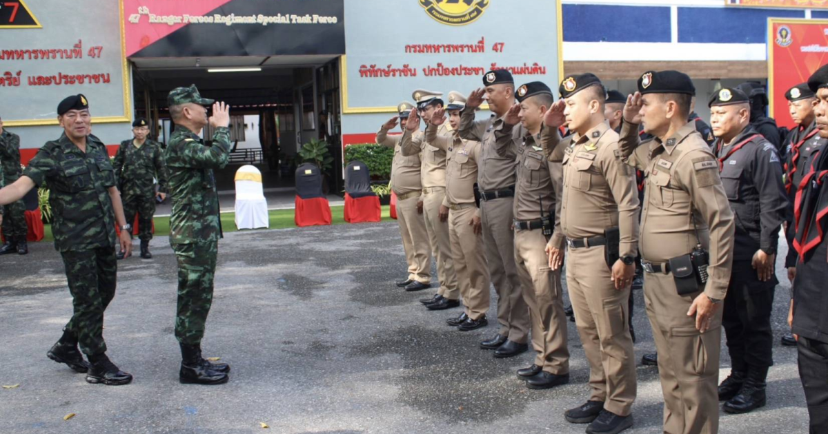 พ.ต.ท.สำราญ มากจันทร์ สวญ.สภ.ปะแต ร่วมให้การต้อนรับ พลเอก เจริญชัย หินเธาว์ ผบ.ทบ. พร้อมคณะ เนื่องในโอกาสเดินทางมาตรวจเยี่ยมรับฟังบรรยายสรุปผลการปฏิบัติภารกิจ ในพื้นที่ จชต. พร้อมทั้งพบปะกำลังพล และมอบสิ่งของอุปโภคบริโภค เพื่อเป็นขวัญกำลังใจแก่กำลังพลที่ปฏิบัติภารกิจในพื้นที่ จชต. ณ บก.ทพ.47 อ.ยะหา จ.ยะลา
